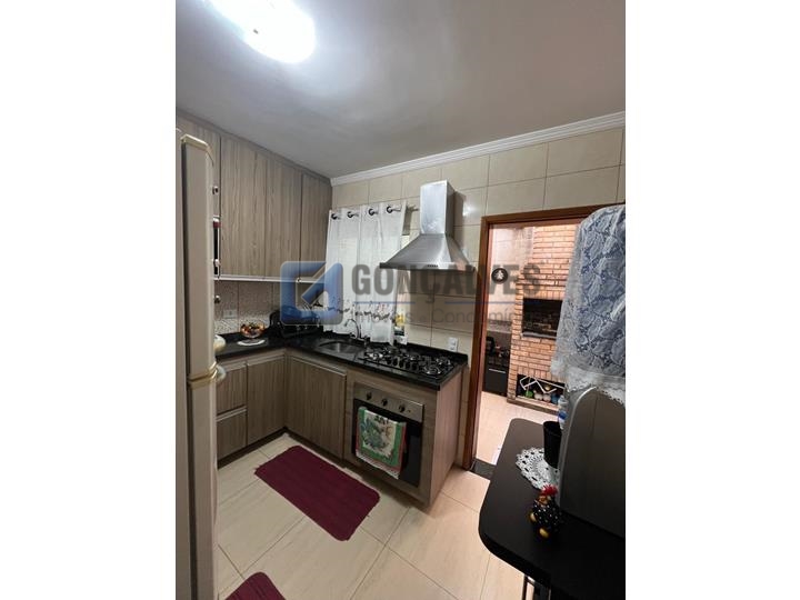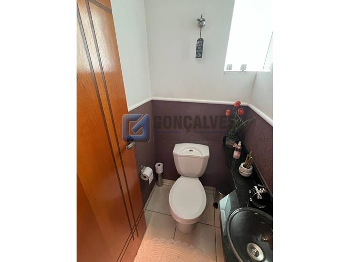 Sobrado 3 dormitórios sendo 1 suite, 94 mts² no Jardim Jamaica em Santo André.\n\nSobrado com 3 dormitórios, sendo 1 suíte com sacada. Conta com sala ampla, cozinha planejada, 2 banheiros, lavabo, área de serviço e 2 vagas com portão automático. Quintal com churrasqueira, ideal para momentos em família. Imóvel completo e bem distribuído. Estuda permuta por apartamento de menor valor. Ótima oportunidade!\n\n\nRef. 104556 R$