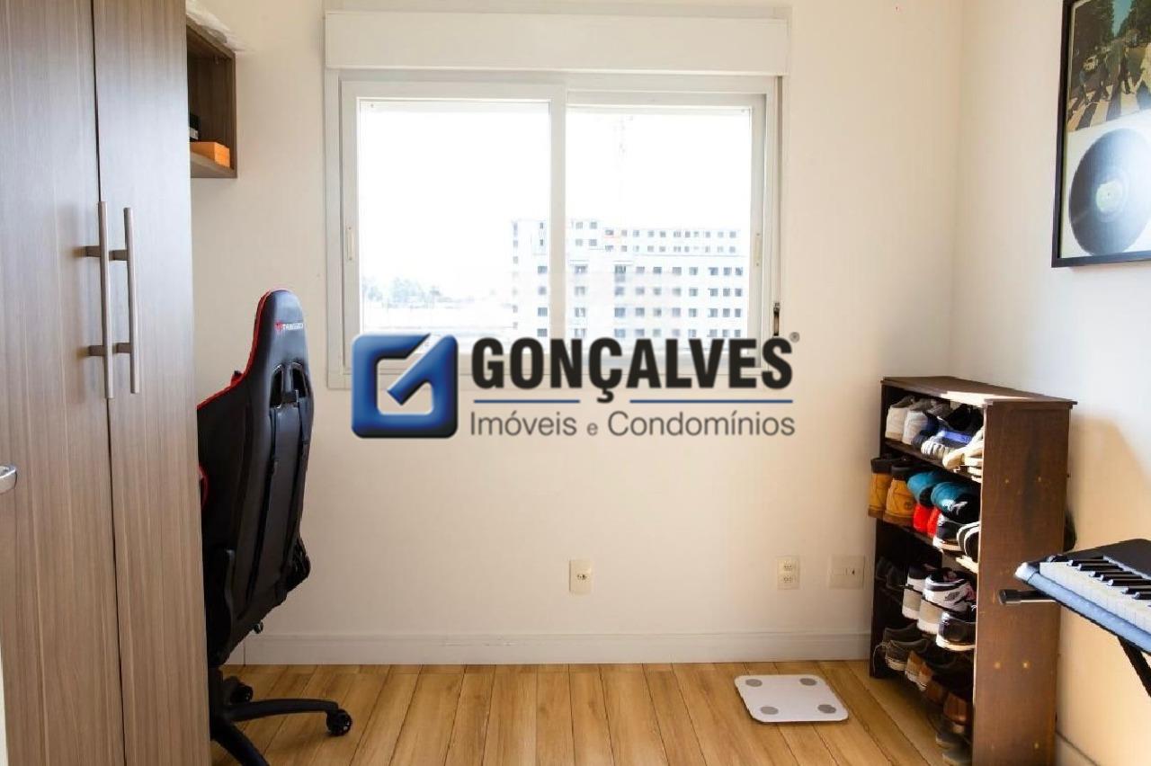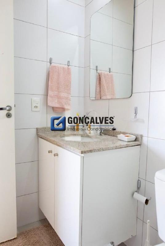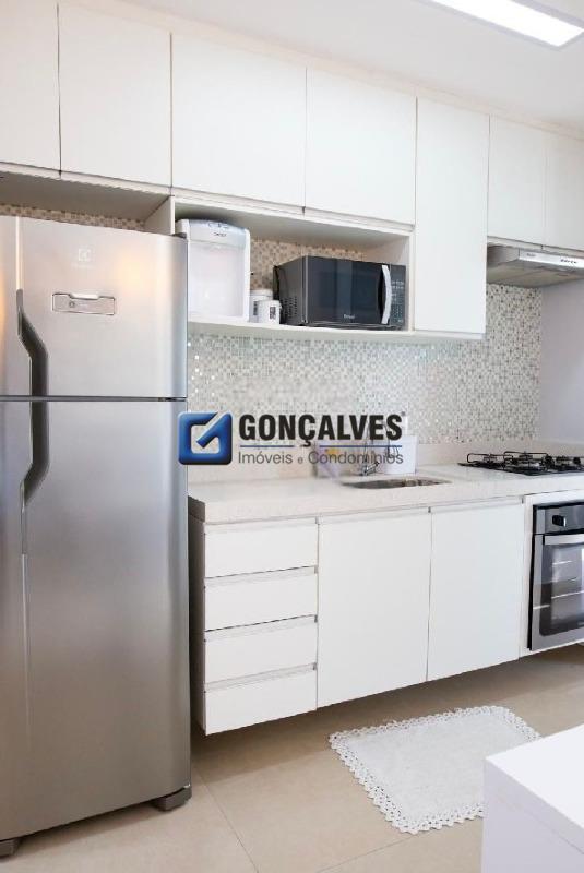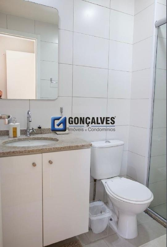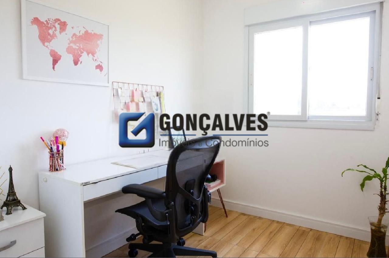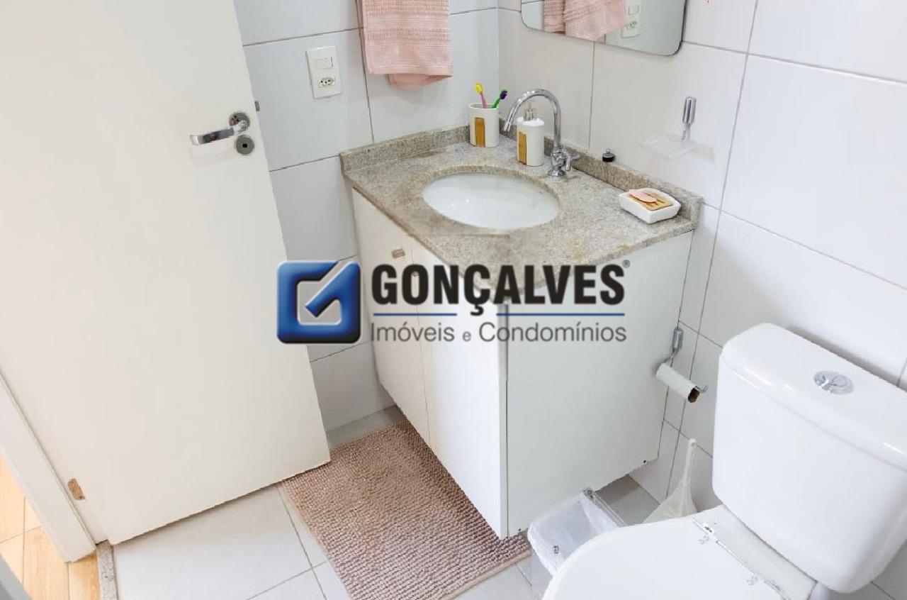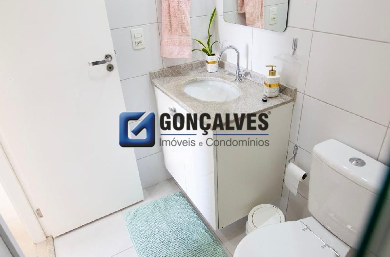 Venda de um apartamento residencial de 75 m², com 3 dormitórios, 1 banheiro com box, 1 sala, 1 varanda e 1 vaga. Localizado no Jardim, Santo André, com área de serviço, armários no banheiro e na cozinha, interfone, portão eletrônico, portaria 24h e segurança 24h. Lazer completo com piscina, quadra poliesportiva, churrasqueira, playground e salão de festas., ideal para quem busca praticidade e estrutura de condomínio.