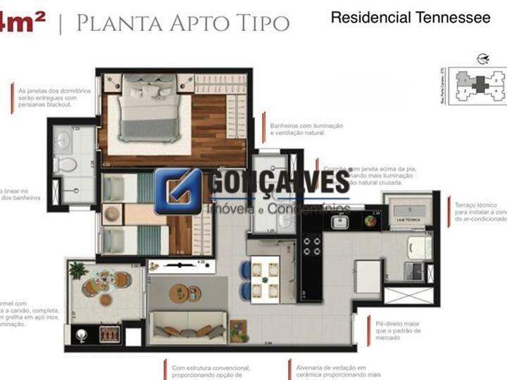 Oportunidade de compra no Campestre, Santo André. Apartamento residencial de 64,64 m² com 2 quartos, sendo 1 suíte, 2 banheiros e sala com varanda gourmet, cozinha. Possui 1 vaga de garagem, elevadores (2) e está localizado em andar alto. Funcional: área de serviço e água individual. Lazer completo no condomínio: academia, piscina, sala de jogos, churrasqueira, playground e salão de festas. Entrega prevista para Setembro de 2026, entregue com piso e revestimento na área de serviço.
