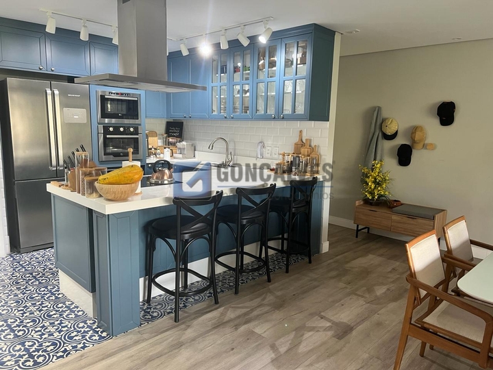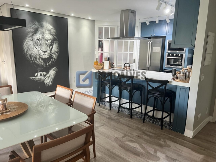 - Com 113m² de área construída, o imóvel possui 3 dormitórios 2 ambientes piso laminado, sendo 01 suíte, sala 2 ambientes com sacada gourmet, cozinha americana planejadas, banheiros com box e gabinete.