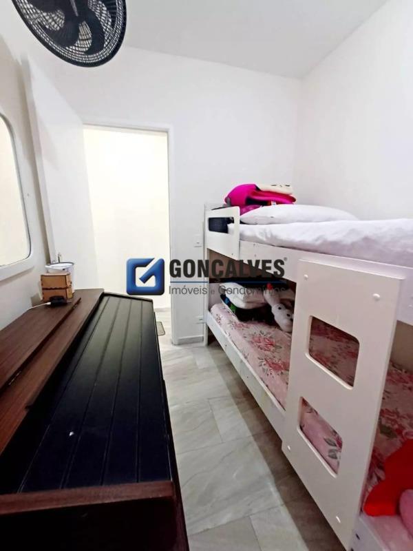 Apartamento Cobertura 2 dormitórios, 104 mts² na Vila Alzira em Santo André.\n\n\nCobertura com 2 dormitórios, sala para 2 ambientes, cozinha planejada e bem arejada, 1 banheiro, área de serviço e 1 vaga coberta. A cobertura é 50% coberta, ideal para criar um espaço gourmet ou área de lazer. Imóvel funcional e bem distribuído, perfeito para quem busca conforto, privacidade e um espaço extra para aproveitar com a família e amigos!\n\nRef. 99451 R$