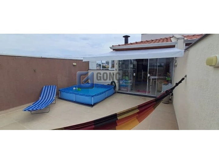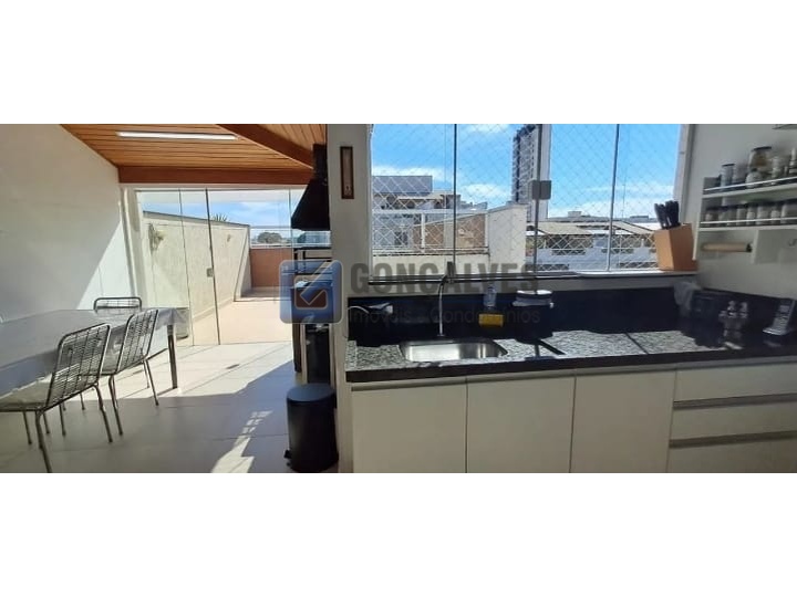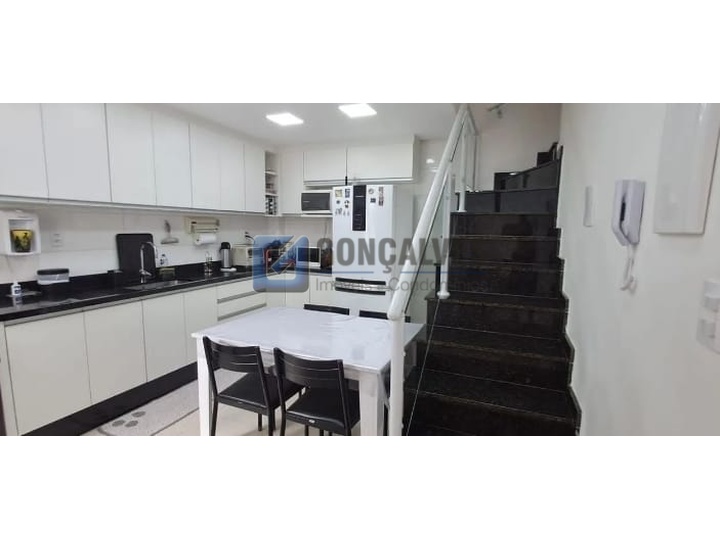 Apartamento Cobertura 2 dormitórios sendo 1 suite, 110 mts² no Bairro Campestre em Santo André.\n\nLinda cobertura com 2 dormitórios, sendo 1 suíte com planejados e terraço privativo. Sala ampla, cozinha conceito aberto com armários planejados, cooktop e forno a gás. Parte superior com cozinha planejada, geladeira, espaço gourmet com churrasqueira, área de serviço, banheiro e quintal. 2 vagas demarcadas. Excelente localização, próxima a comércios e serviços. Conforto, estilo e praticidade em um só lugar!\n\nRef. 155557 R$