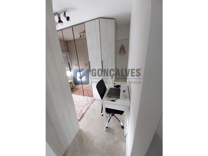 Venda: apartamento residencial com 3 quartos (1 suíte), 2 banheiros e 2 vagas de garagem em Osvaldo Cruz, São Caetano do Sul. Área interna de 73 m² com varanda gourmet, área de serviço e armários na cozinha e nos quartos. Infraestrutura completa com interfone, piscina, churrasqueira e playground.