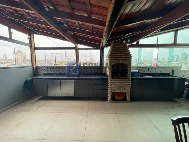 Oportunidade única: cobertura residencial em Vila Camilópolis, Santo André. Com 124 m² de área útil, oferece 2 quartos (1 suíte), 2 banheiros, sala ampla e espaço gourmet na cobertura. Acabamento em piso porcelanato, ar condicionado, área de serviço, armário nos quartos e cozinha, lavabo e interfone para conforto e praticidade. Aproveite as duas vagas de garagem e a localização estratégica. Qualidade, funcionalidade e segurança para você e sua família em um único negócio.