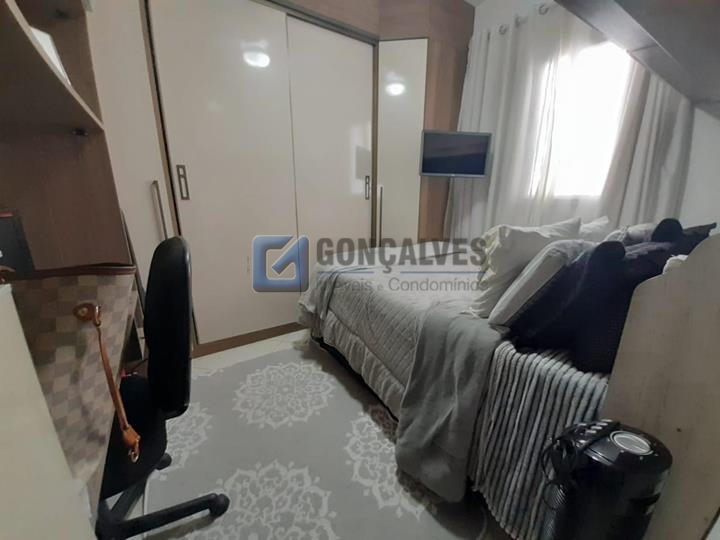 Cobertura residencial em Santo André (Vila Príncipe de Gales) com 106 m² de área interna, distribuídos em 2 andares. São 4 quartos (1 suíte) e 2 banheiros, além de 1 vaga de garagem. Conta com armários na cozinha e em um quarto, espaço gourmet e churrasqueira, ideal para receber amigos e a família.