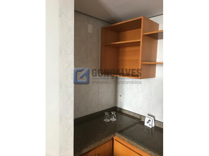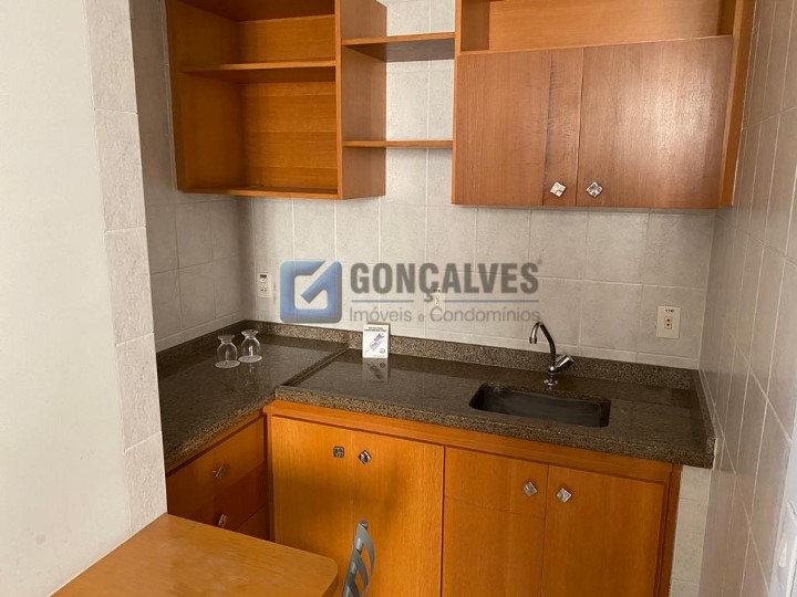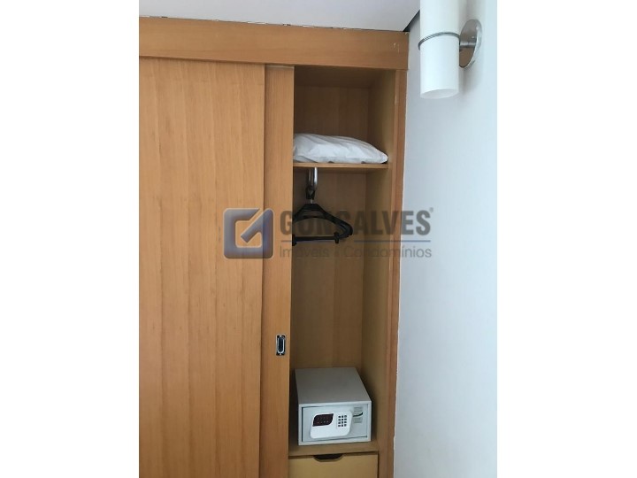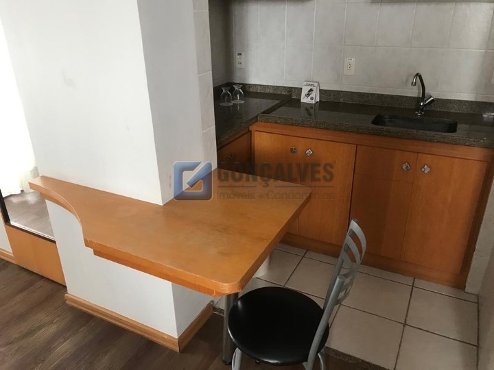 Venda de flat residencial em Santo André, Centro. Área interna de 43,8 m², com piso laminado, 1 quarto, 1 banheiro e 1 vaga de garagem. Conta com área de serviço, armário na cozinha e box no banheiro. Condomínio de R$ 1.350, IPTU mensal de R$ 100. Valor de venda: R$ 299.000. Excelente opção para quem busca praticidade, mobilidade e morar perto de tudo no centro.
