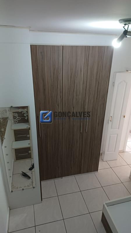 Venda de um apartamento residencial em São Bernardo do Campo (Anchieta). São 57 m² de área interna, 2 quartos, 1 banheiro e 1 vaga de garagem. Localizado no 14º andar, com 2 elevadores. Características: armários no banheiro, cozinha e quarto; quadra poliesportiva e salão de festas.