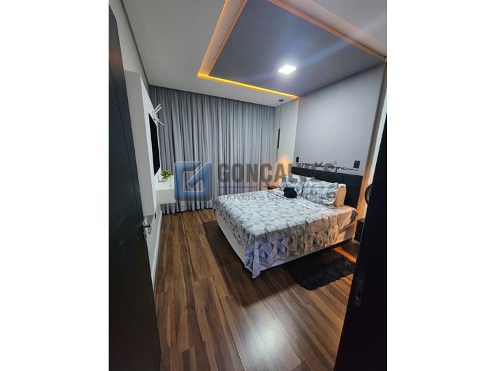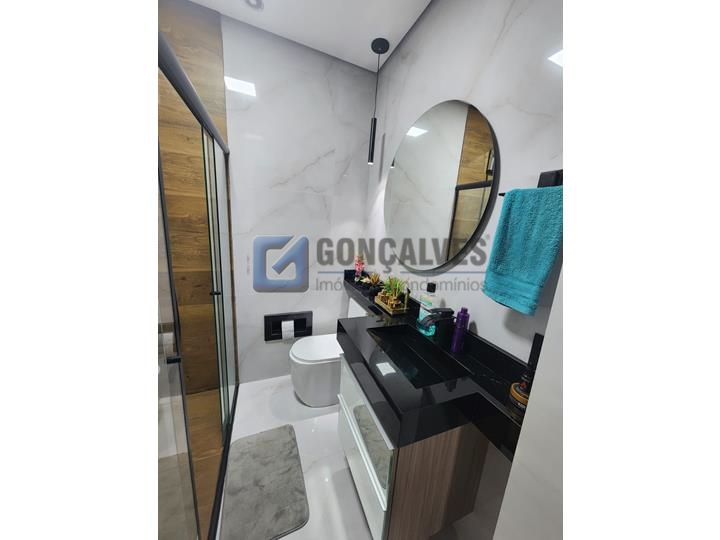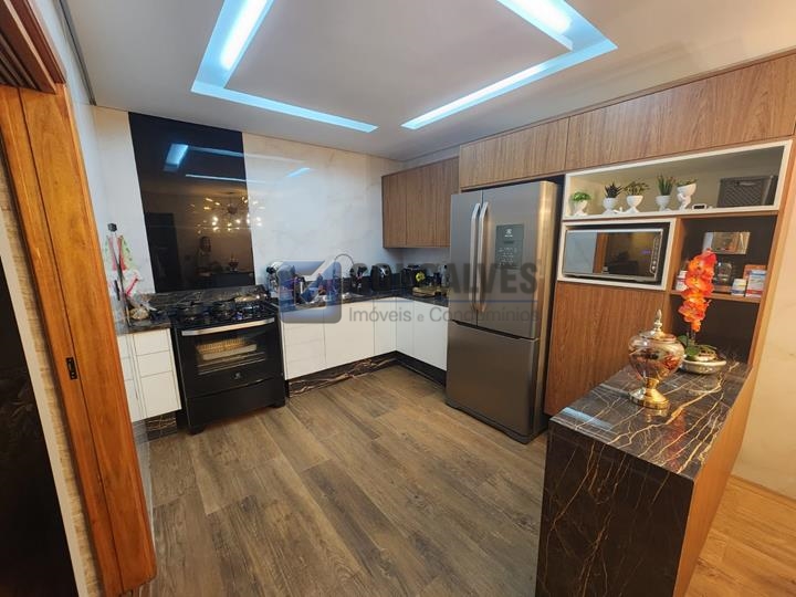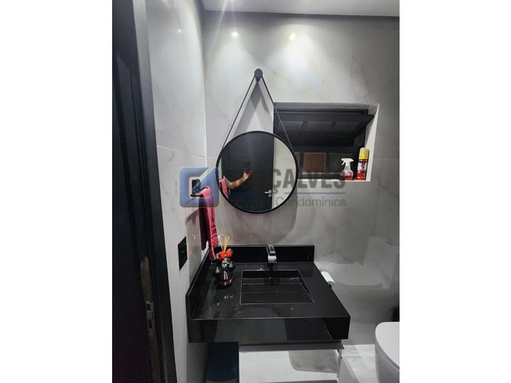 Ótimo sobrado residencial no Jardim Santista, Mauá/SP. São 3 quartos, sendo 1 suíte, 1 sala, 1 banheiro, área de serviço, e 3 vagas de garagem. Possui armários na cozinha e em um dos quartos, com área total de 124 m².
