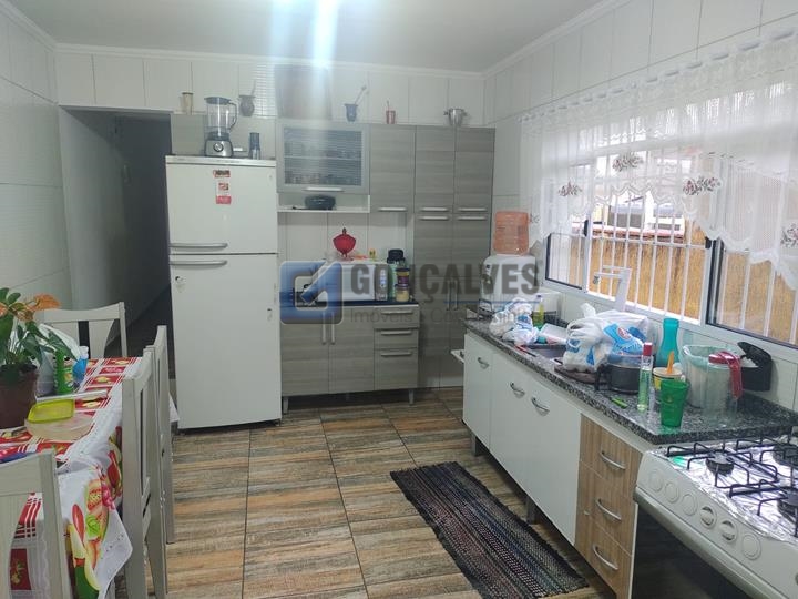 Sobrado residencial em Santo André, bairro Utinga. Área interna de 200 m², área externa de 150 m² e terreno de 150 m². São 6 quartos, 2 banheiros, 1 varanda, 3 vagas de garagem e churrasqueira. Acabamento em piso frio.
