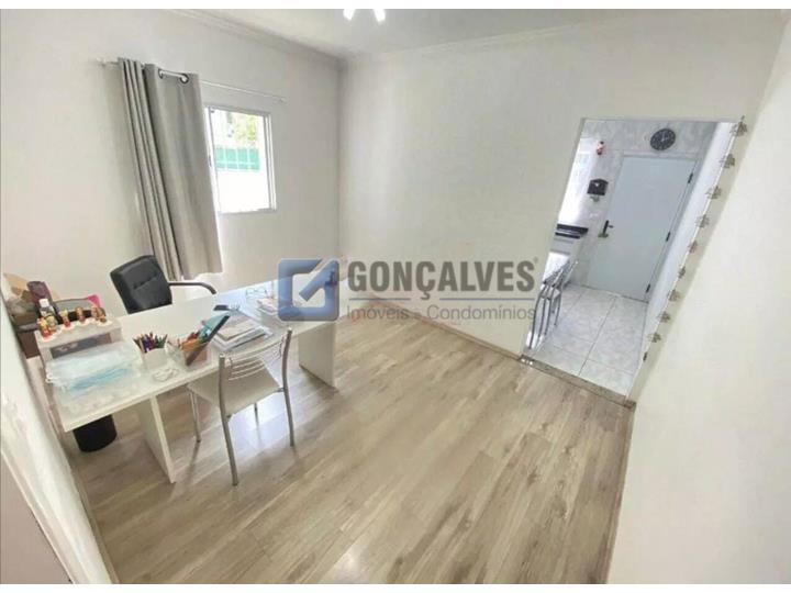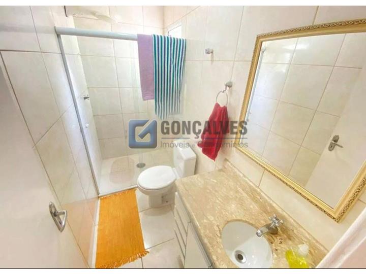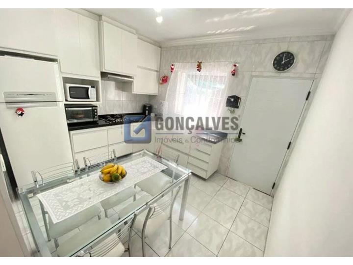 Excelente sobrado residencial à venda em Santo André, no Jardim Stella. São 164 m² de área interna bem distribuída, com 3 quartos (1 suíte), 3 banheiros e 1 sala. Possui piso laminado, área de serviço e armários embutidos na suíte, banheiro, cozinha e quarto. Vagas de garagem: 2.