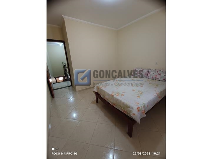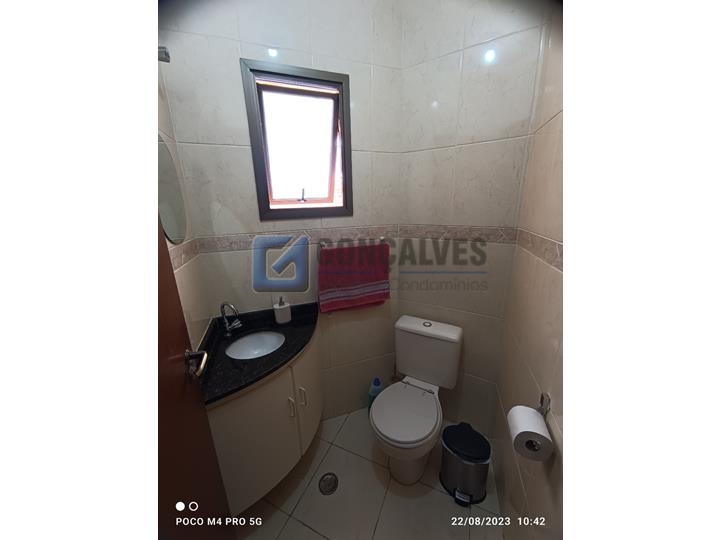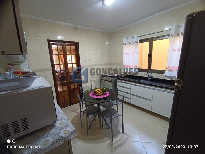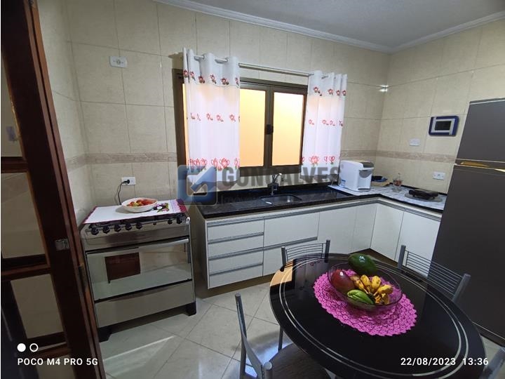 Sobrado residencial com 3 quartos (1 suíte), 2 banheiros e lavabo, em Santo André, Bairro Vila Helena. Destaques: área interna 152 m² e área externa 152 m² em terreno de 125 m², 4 vagas de garagem, piso frio, cômodos com armários na cozinha e banheiro, box de banheiro, área de serviço, portão eletrônico.