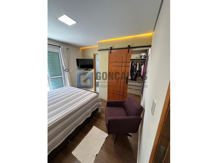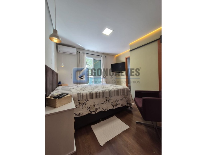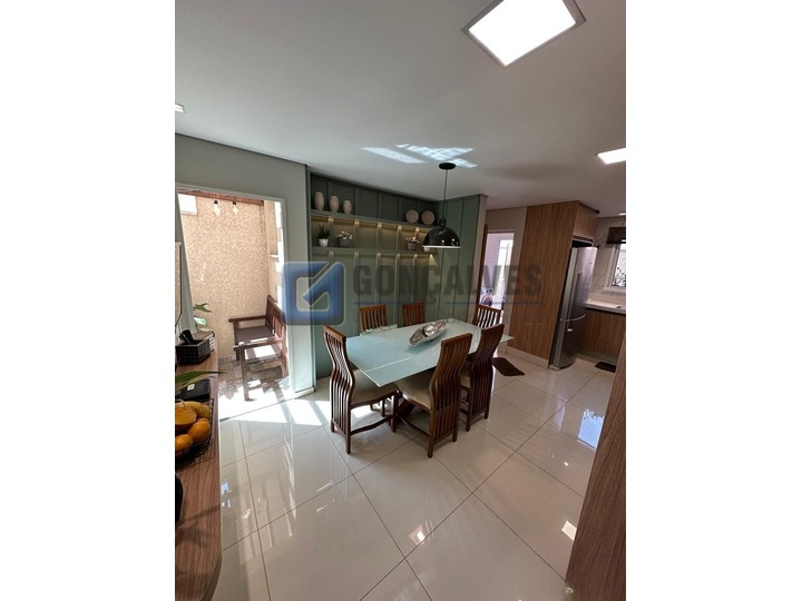 Sobrado de 209 m², localizado em Vila Alzira, Santo André. São 3 quartos, 3 suítes, 1 sala 2 ambientes, 5 banheiros, espaço gourmet, lareira, escritório, closet, armário na cozinha, área de serviço e interfone. Possui 5 vagas de garagem. Ótima opção para quem busca espaço, conforto e praticidade em região residencial estratégica. Aproveite esta oportunidade para adquirir um imóvel com acabamento completo e estilo de vida moderno.