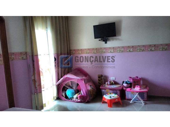 Venda este sobrado residencial no Parque Jaçatuba, Santo André. São 4 suítes, 5 banheiros e uma ampla sala para aproveitar momentos em família. Área interna de 243 m² mais 243 m² de área externa, terreno de 125 m², com área de serviço e armário na cozinha. São 7 vagas de garagem.