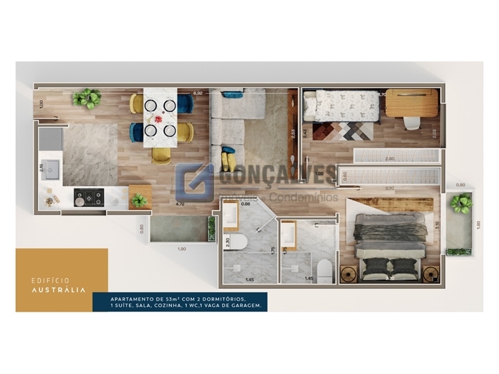 Oportunidade de morar com conforto: apartamento residencial com 2 quartos (1 suíte), 2 banheiros e 1 vaga, no 7º andar, em Santo André, no bairro Parque das Nações. Possui acabamento em porcelanato e área interna de 53,62 m². Conta com 1 elevador, 4 unidades por andar e localização prática. Valor de venda: R$ 455.000,00. Condomínio: R$ 0,00 | IPTU mensal: R$ 0,00. Excelente opção para quem busca custo-benefício e qualidade de vida em uma região em crescimento.